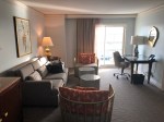 Our previous Ritz-Carlton experience had been at San Francisco, in a standard room (two queen beds, if memory serves) on the Club Level. The Executive Suite was obviously larger, perhaps three times the floor space with a guest lavatory, living area with sofa and desk, bedroom with a vanity desk and chair, hallway with closets, dual-vanity restroom, and separate bathroom with a standard tub, shower, and toilet.