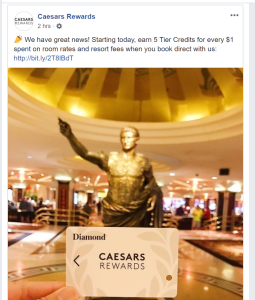 Now, as of March 1, 2019, they’ve enhanced the program a little bit more. With any paid stay booked directly with Caesars (online at their website, through the app, or through their call center), visitors will earn 5 tier credits per dollar spent on room rate and resort fees. (Facebook, Twitter)